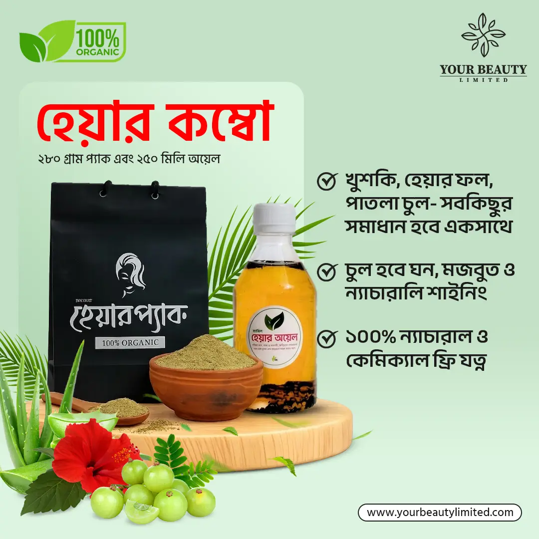 এই হেয়ার কম্বো ব্যবহার করলে আপনার চুল পরা বন্ধ হয়ে চুল লম্বা হবে মাসে ৩ থেকে ৪ ইঞ্চি, পাশাপাশি চুলকে ন্যাচারাল ভাবে সিল্কি শাইনি করে তুলবে।